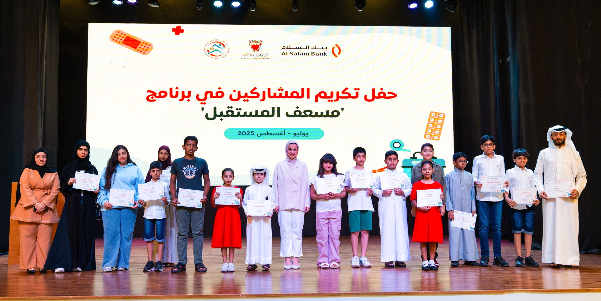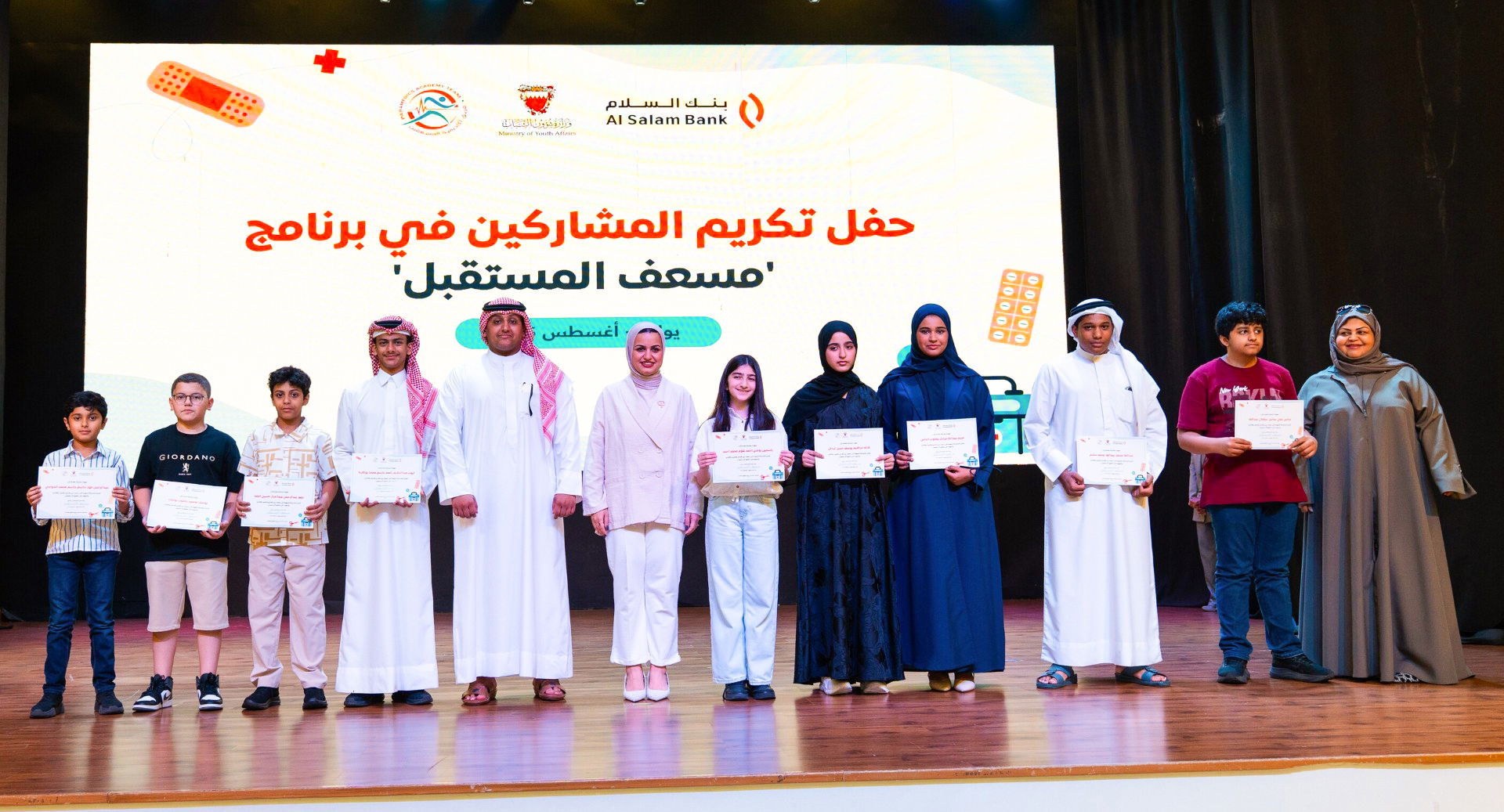 The remarks came during the closing ceremony of the Future Paramedic programme, organised as part of the activities of Youth City 2030, Muharraq and Hamad Town Model Youth Centres, and the Science Centre, in cooperation with the Paramedics Academy Team and supported by Al Salam Bank. The programme aimed to raise health and first aid awareness among youth and develop their ability to respond to emergencies with confidence and responsibility.